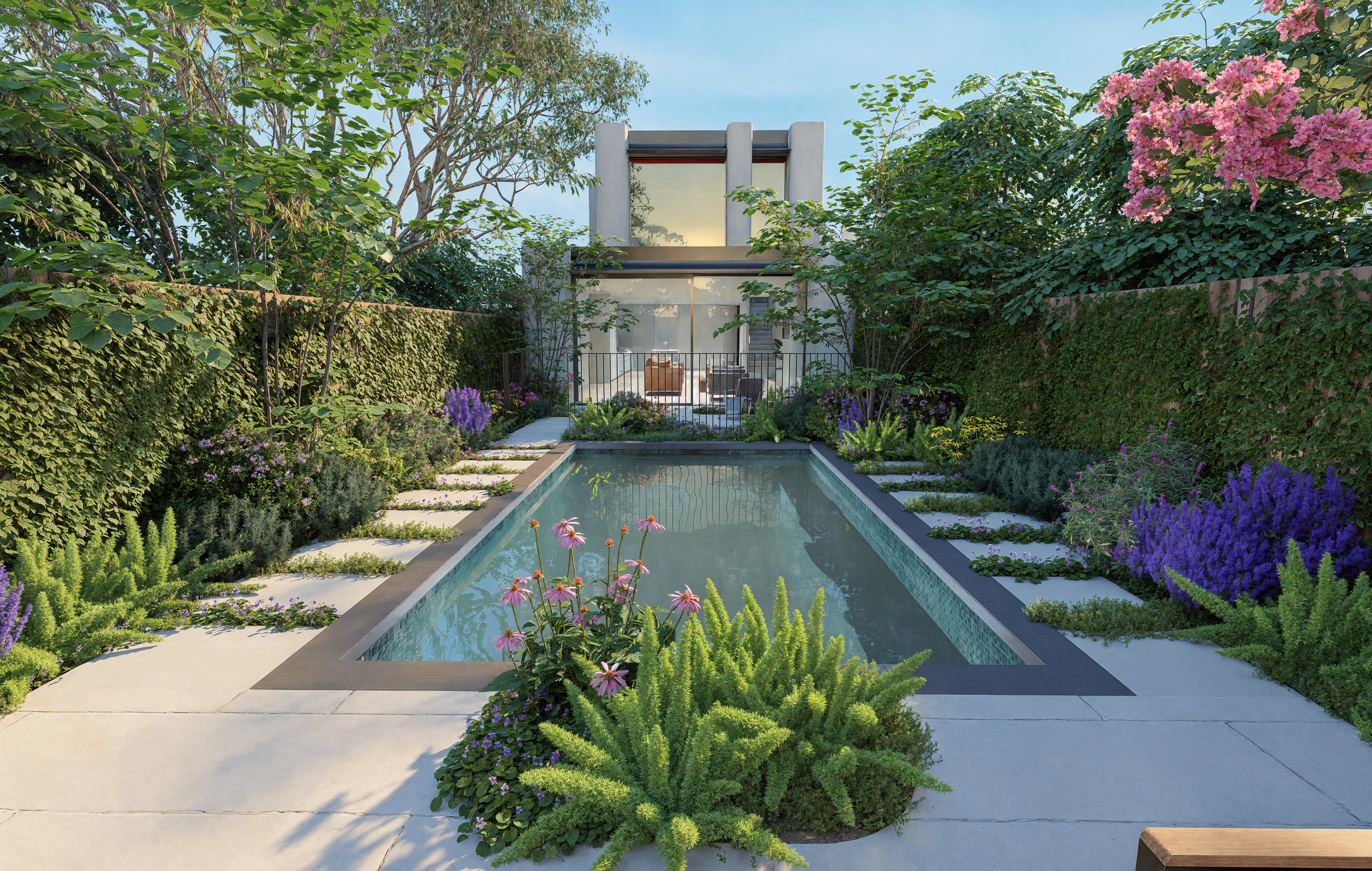 This refined residential garden was delivered in collaboration with Turn Group and MDGA Architects, bringing architecture and landscape together as a cohesive outdoor retreat. The design focuses on a calm, immersive garden experience, with layered planting softening strong architectural forms and framing a central pool and entertaining pavilion. A restrained palette of materials and carefully curated planting creates year-round interest while enhancing privacy, shade and connection to nature. The result is a timeless outdoor space designed for both quiet retreat and social gathering.